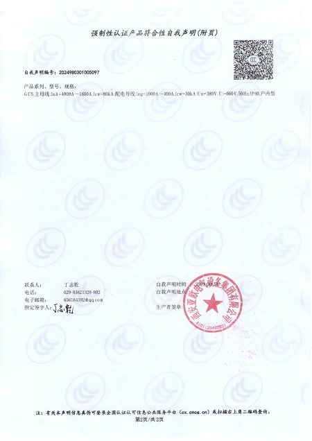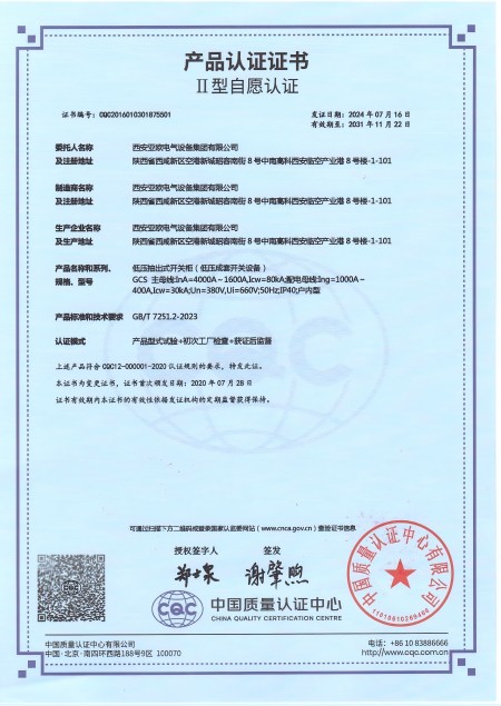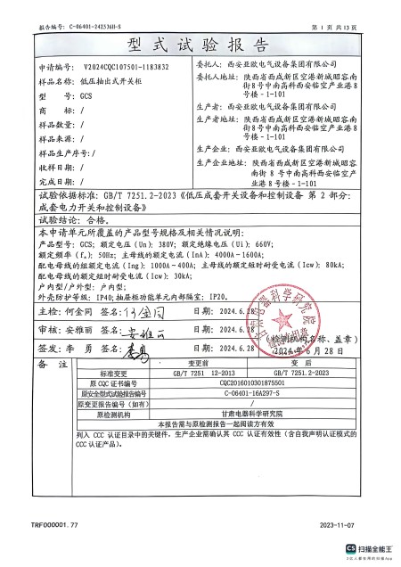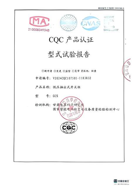 - 關于我們 - 資質(zhì)榮譽 - 低壓抽出式開關柜(GCS)資質(zhì)